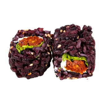 6 pièces au riz noir, fromage de chèvre frais, tomate confite
