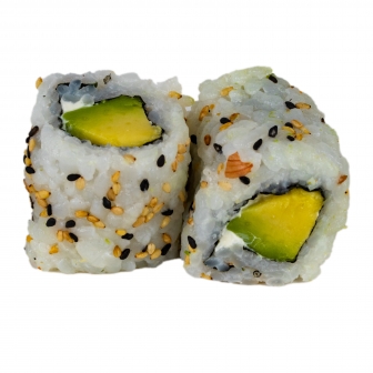 Rouleaux de Maki inversés parsemés de sésame au surimi et à l'avocat, servi par 6