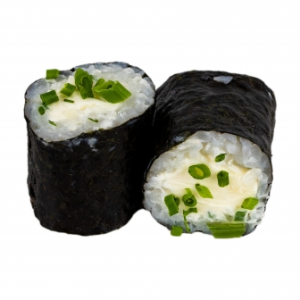 Cheese et ciboulette enroulé dans du riz puis dans une feuille d'algue, servi par 6