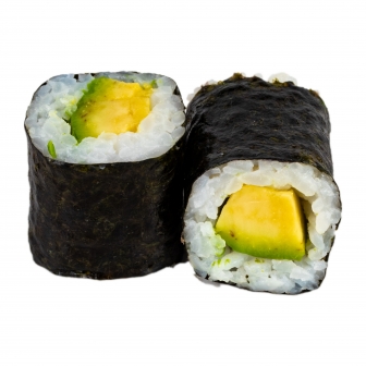 Avocat enroulé dans du riz puis dans une feuille d'algue, servi par 6