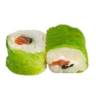 Saumon, cheese et menthe enroulés dans du riz, une feuille de laitue et une feuille de riz, servi par 6