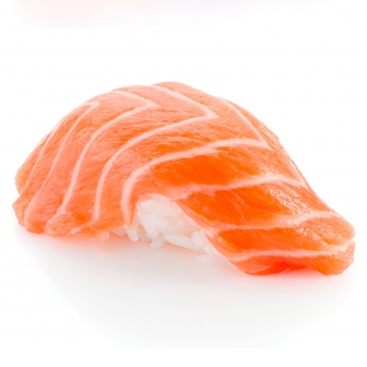 Tranches de saumon sur une boulette de riz vinaigré, servi par paire